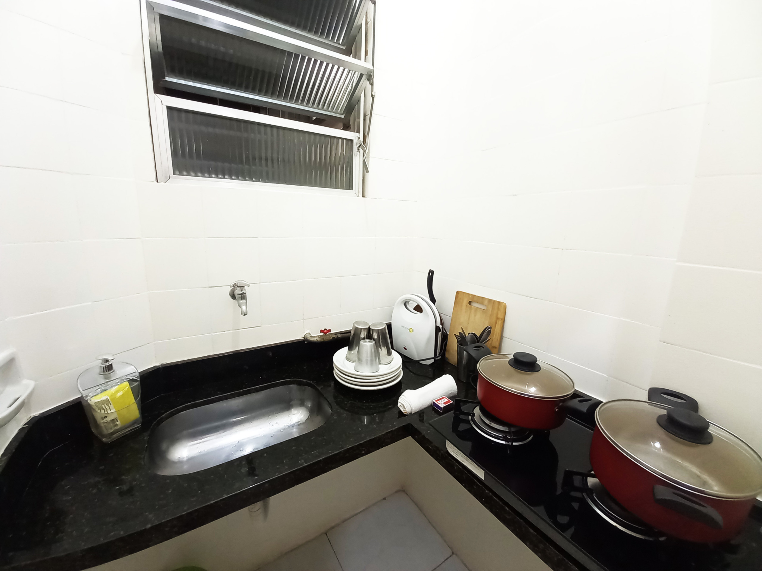 Back street apartment on Avenida Atlântica, Copacabana beach street. 10th floor. Close to bars, restaurants, market and subway (Cantagalo Station). Studio with bedroom, kitchen and bathroom. Equipped with 2 single beds and 1 double bed, sofa bed, Smart TV, coffee maker, air conditioning, dining table, chairs, fridge, two-burner cooktop, kitchen supplies (pots, crockery and cutlery), bed linen and towels and Wi-Fi service. Property without luxury, practical and with unbeatable location and cost-benefit.